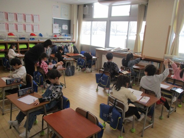 3学期から「倉垣パワーアップタイム」として、1~4年生は、算数科の授業の最初の10分間、5・6年生は、月曜日の6時間目に、学力向上を目指して課題に取り組むことにしました。今日の6時間目は、5・6年生の「倉垣パワーアップタイム」の1回目でした。各教室で練習問題に取り組んでいました。学習に関わってくれている先生方もいつもより多いです。