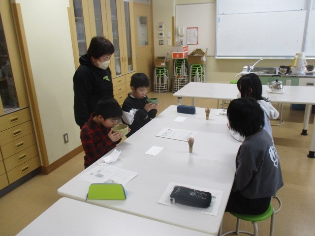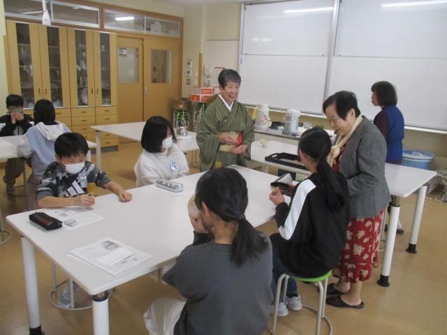 今日は、今年度最後のクラブ活動でした。クッキング手芸クラブには、地域の講師の方に来ていただいて、お茶(茶道)を教えていただきました。地域の先生方、ありがとうございました。お茶、とてもおいしかったです。