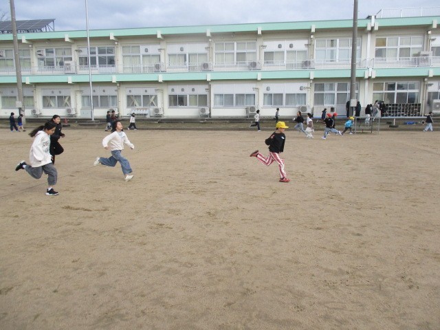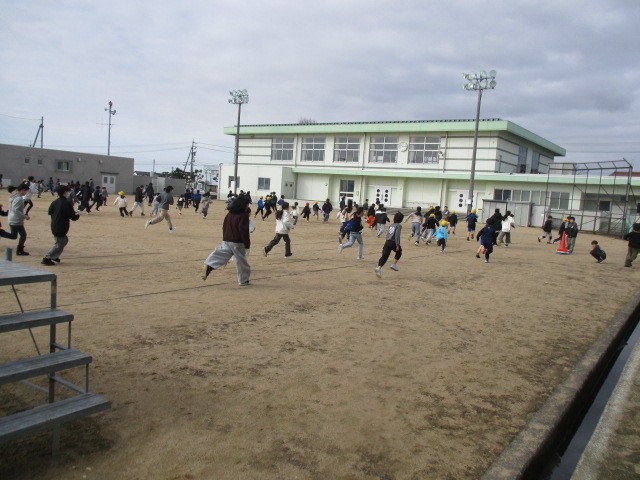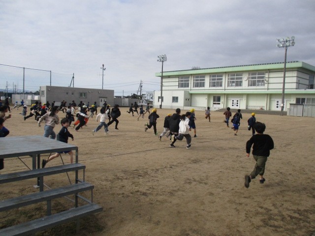 ぐんぐんタイムの最後はみんなで走りました。とってもいい笑顔の子供たちがたくさんいました。