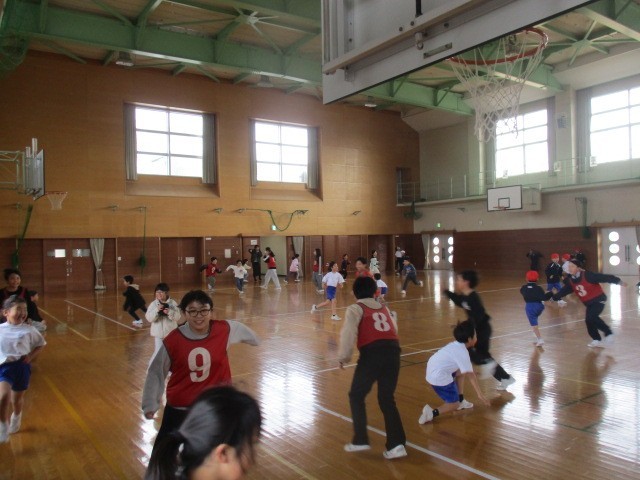 2時間目と3時間目の間の休み時間に、運動委員会主催の「1・2年生の氷おに」が開かれました。鬼の中には、先生方も…。楽しく活動できました。