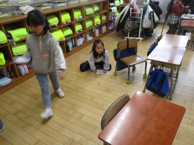 学校の中にかくれたファミリー班の6年生さんをみんなで探しました。