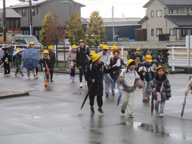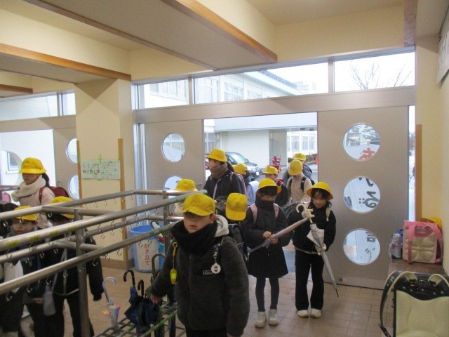 今朝の児童玄関の様子です。雪は、降っていませんでしたが、雨は降っていました。子供たちの挨拶は元気です。