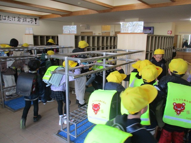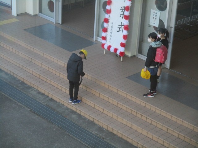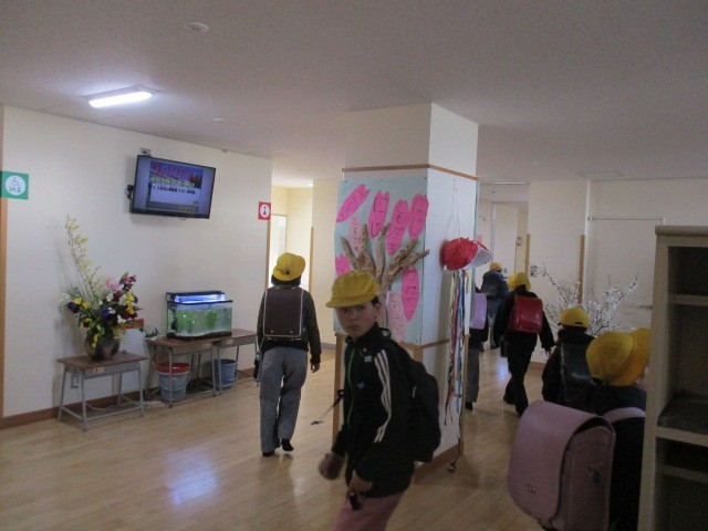 3月19日(木) 今朝の児童玄関
