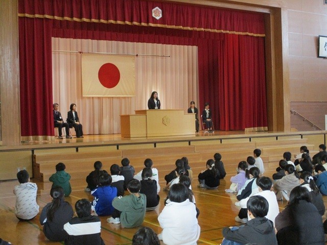 校長先生のお話では、修了証についてや「目標を決めてがんばることができた人」の確認がありました。生徒指導主事の先生からは、春休み中に気を付けることの話がありました。2年生と5年生からは、3学期にがんばったことの発表がありました。