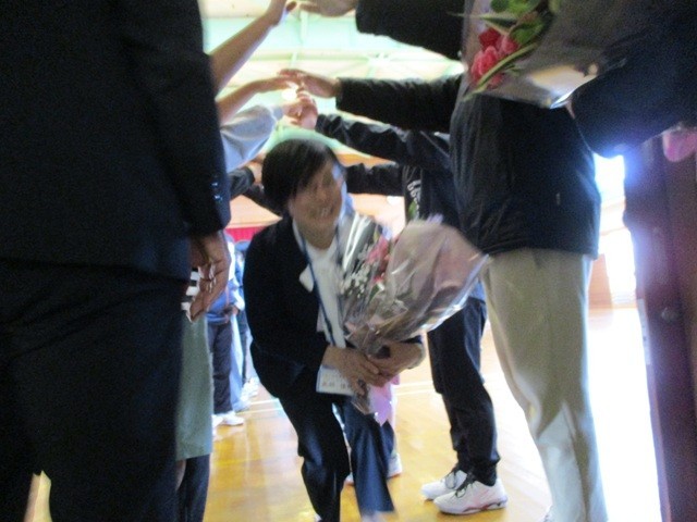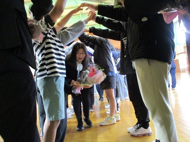 子供たちがつくってくれたアーチを通って体育館を退場しました。