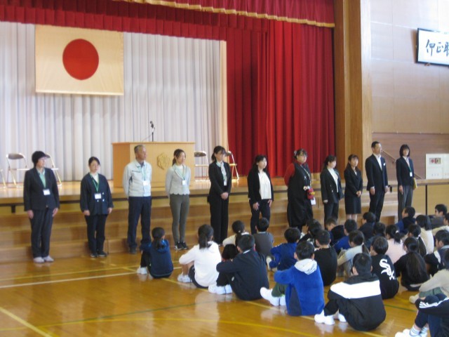 校長先生のお話では、修了証についてや「目標を決めてがんばることができた人」の確認がありました。生徒指導主事の先生からは、春休み中に気を付けることの話がありました。2年生と5年生からは、3学期にがんばったことの発表がありました。