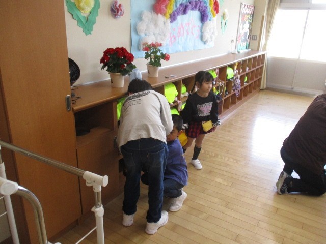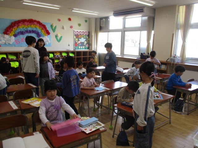 6年生が登校した1年生の朝の準備のサポートをしてくれました。