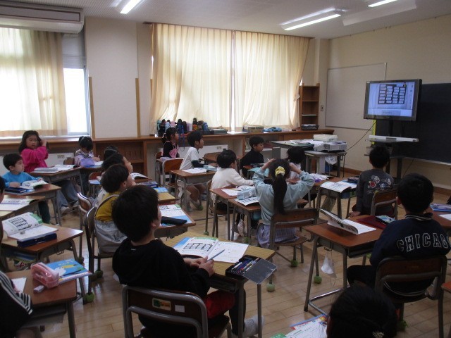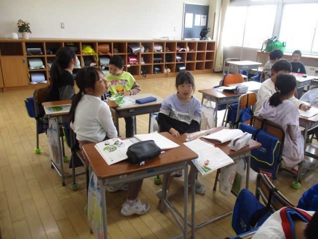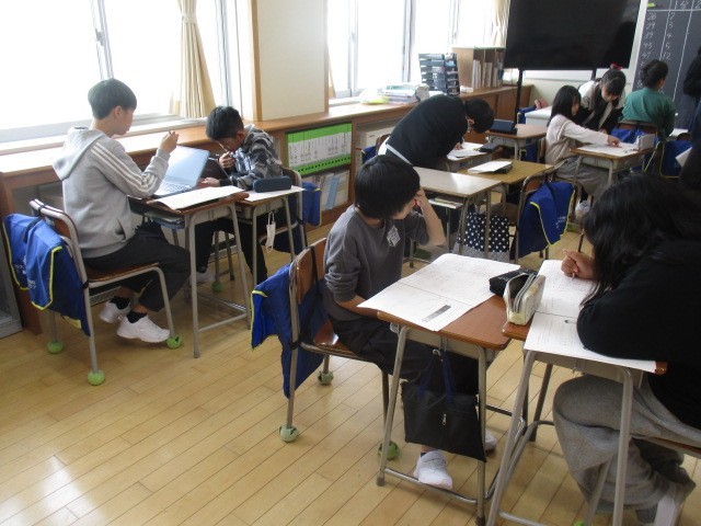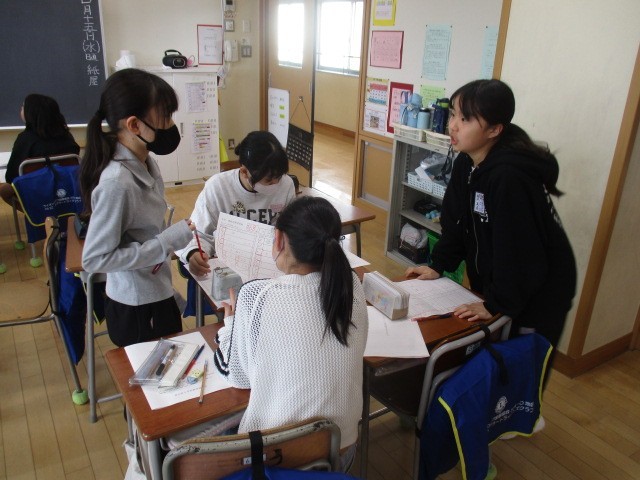 先日行った県学力調査の復習をしました。ペアやグループで確認しながら見直しました。
