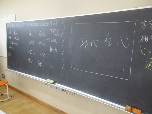 昨年度の自分たちを振り返り、今年度の学級目標を考えています。「以心伝心」がキーワードのようです。どんな学級目標になるか楽しみですね。
