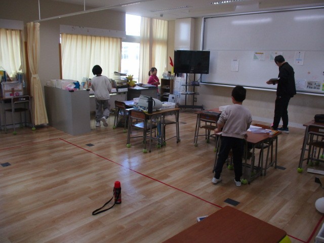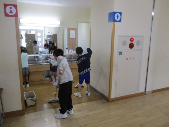 ランドセルを片付けて、教室の清掃を始めました。ピカピカにすると気持ちがよいですね。