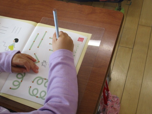 国語の学習です。正しく鉛筆をもって、教科書に線を引く練習をしました。上手に引けたかな。