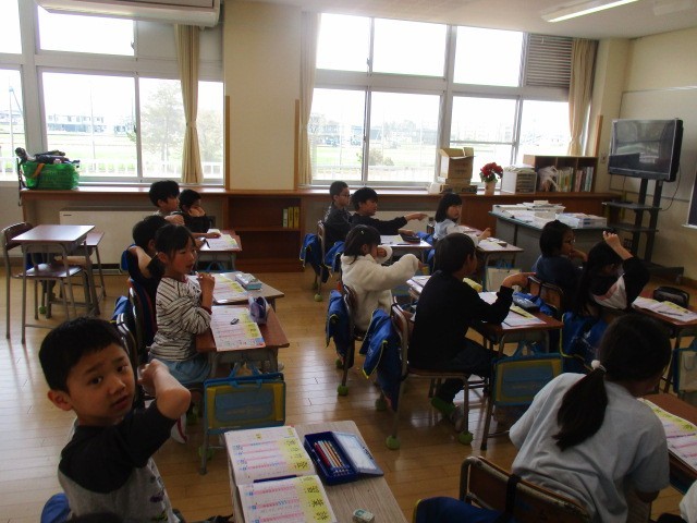 国語の時間です。新出漢字の書き順を確認しています。3年生になると画数も多くなりますね。