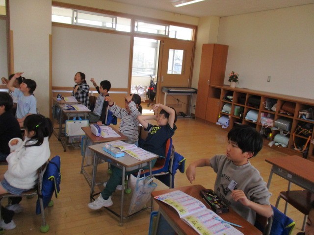 学年音楽です。「翼をください」を歌いながらリズム遊びをしました。歌いながらリズムをとって、同時に2つ行うのはなかなか難しいけど楽しそうです。