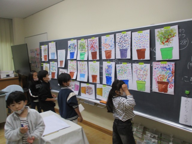 1年生は、3時間目に自分の描いた花の絵の台紙を選んでいました。