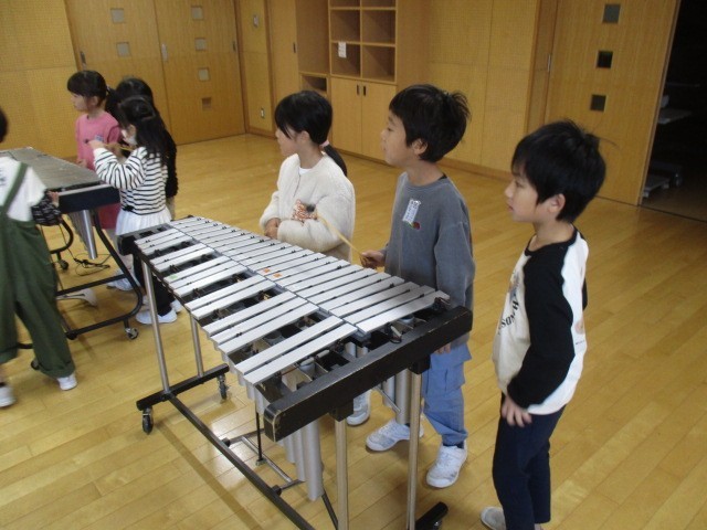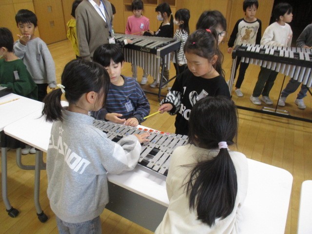 1年生の3時間目は、音楽科の学習でした。鉄琴をみんなで確かめていました。