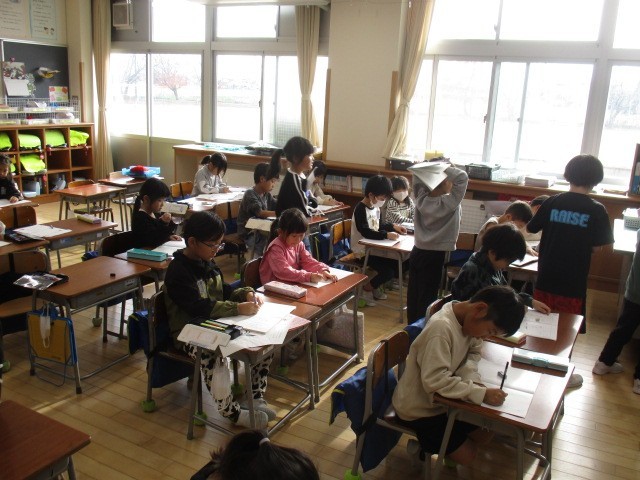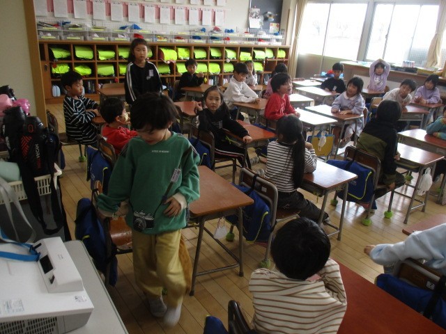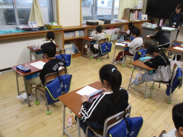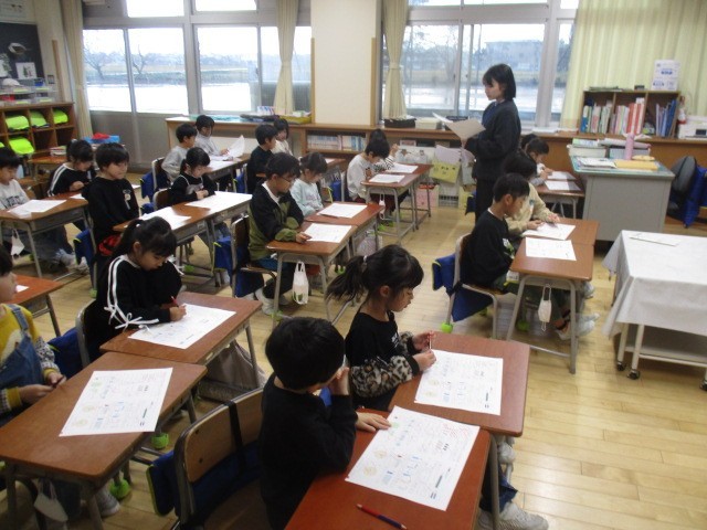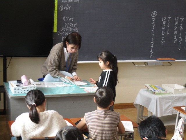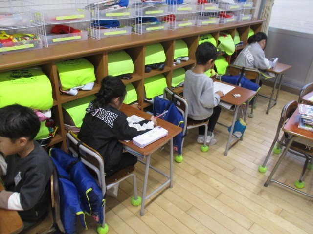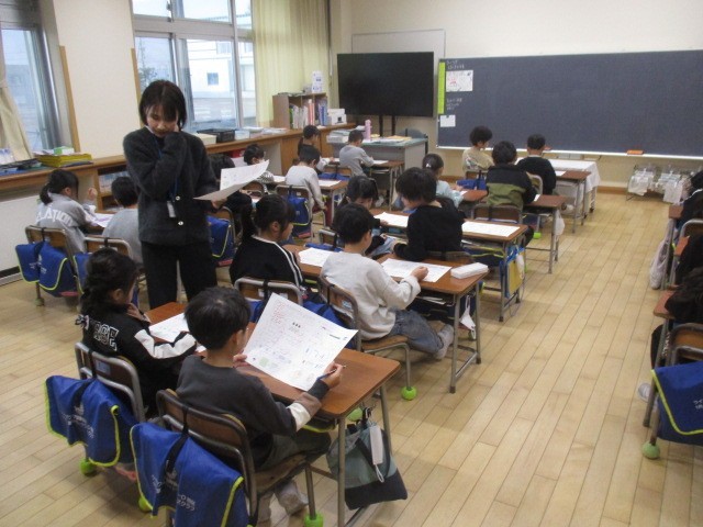 1年生は、5時間目に連絡帳をかいていました。かいた人から先生にチェックしてもらっていました。