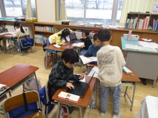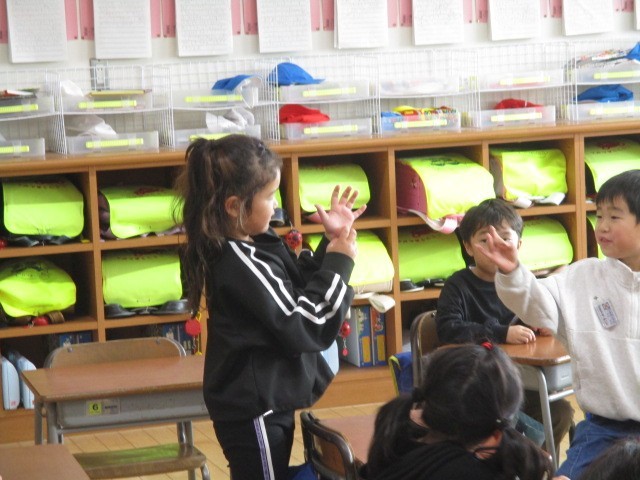 1年生は5時間目に聞き合いをしていました。友達の話を一生懸命に聞いていました。