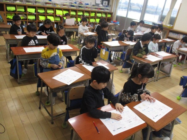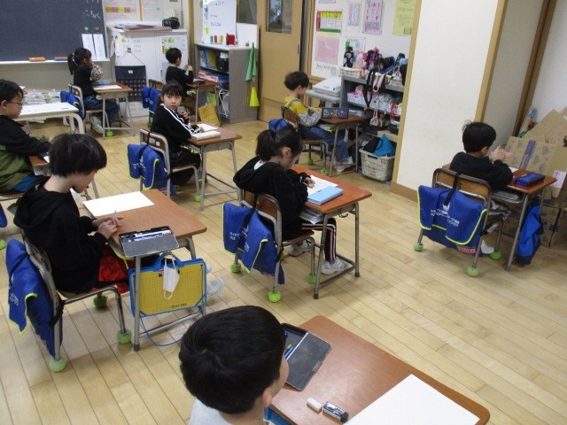 1年生の2時間目は、算数の学習でした。文章問題から、たし算になるのか、ひき算になるのかをよく考えて問題を解いています。