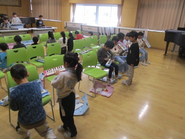 1年生の3時間目は、音楽科の学習でした。きらきらぼしの練習をしていました。