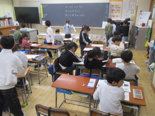 1年生の1時間目は、国語科の学習でした。カタカナの練習をしていました。
