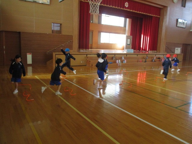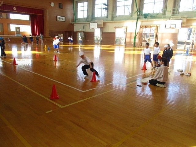 1年生の1時間目は、体育科の学習でした。いろいろなコースで運動していました。