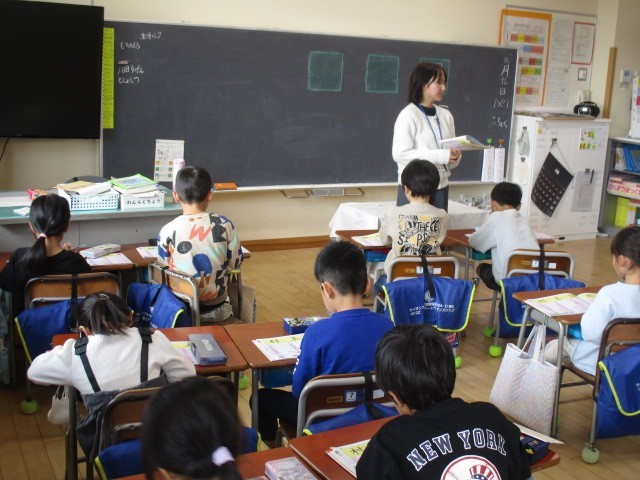 1年生は、5時間目に連絡帳をかいていました。かいた人から先生にチェックしてもらっていました。