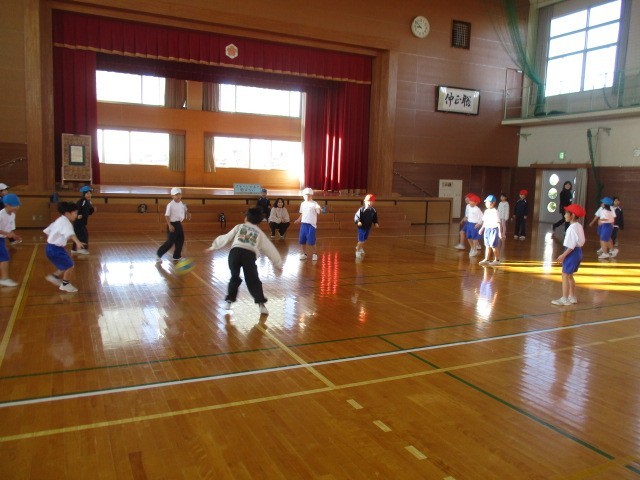 1年生の1時間目は、体育科の学習でした。ドッジボールをしていました。