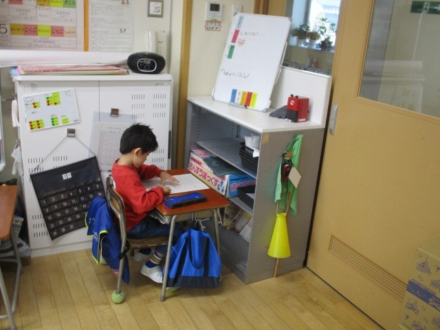 1年生は、2時間目に漢字のプリントをしていました。終わった人から丸付けもしていました。