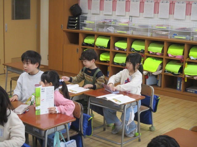 1年生は、1時間目に友達と冬休み中のことを楽しく話していました。