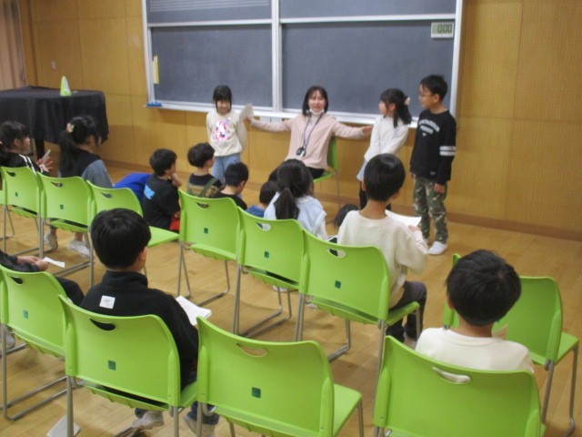 1年生の3時間目は、聞き合いの時間でした。友達の話をみんな一生懸命に聞いていました。