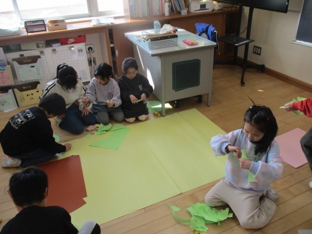 1年生は、3時間目に掲示物をつくっていました。卒業式に向けての掲示物をつくっていました。