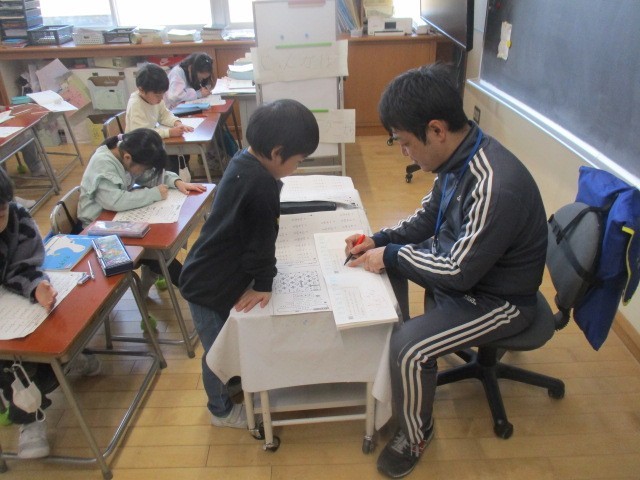 1年生の1時間目は、国語科の学習でした。漢字のプリントをしていました。