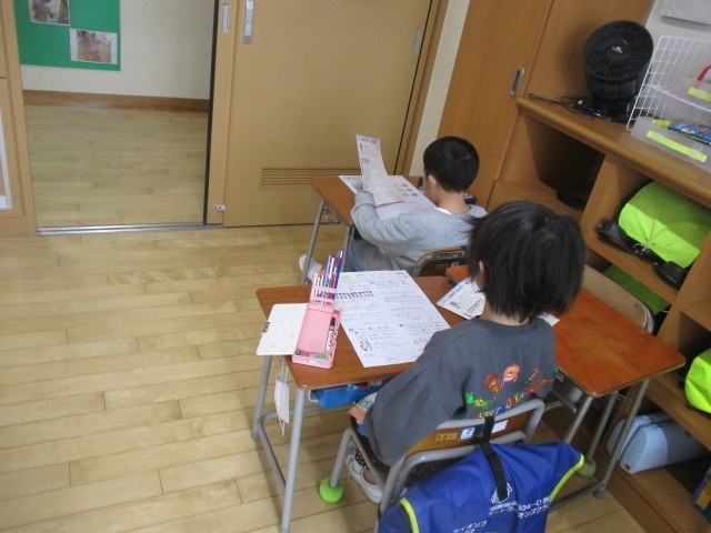1年生の1時間目は、算数科の学習でした。たし算やひき算のプリントやドリル等を進めていました。