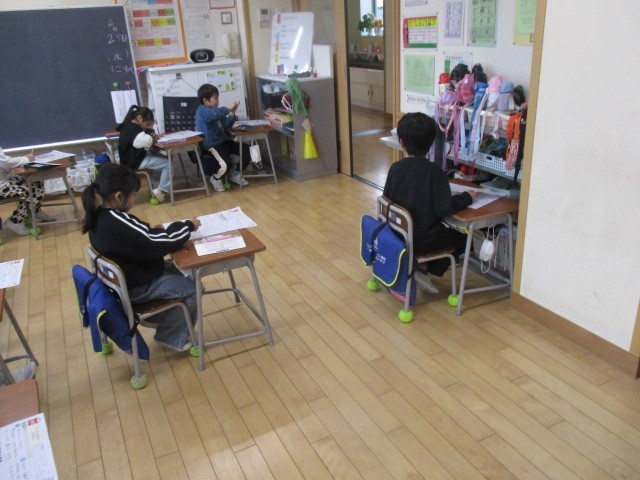 1年生は、5時間目に帰りの準備をしていました。連絡帳をかいていました。