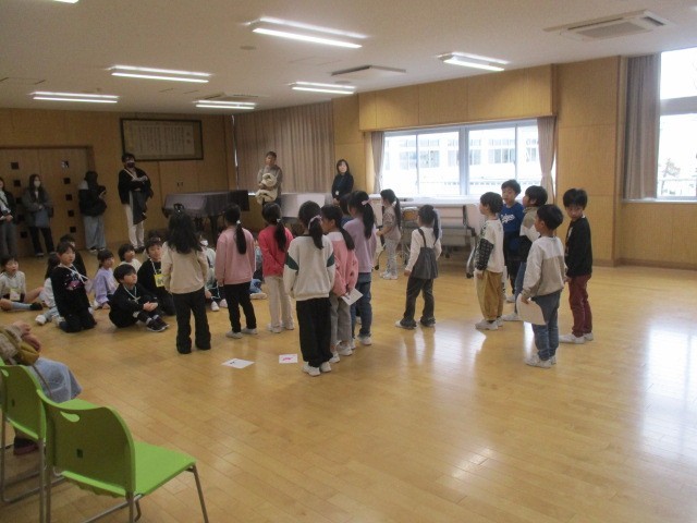 1年生の3時間目は、生活科の学習でした。「ようこそ年長さん 倉垣小学校で遊ぼう」ということで、4月に入学してくる年長さんを学校に招待しました。一緒にゲームをしたり、べんきょうたいけんスタンプラリーをしたりしました。