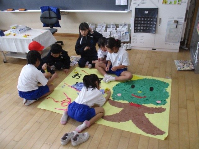 1年生の1時間目は、生活科の学習でした。今日の交流会の準備をしていました。