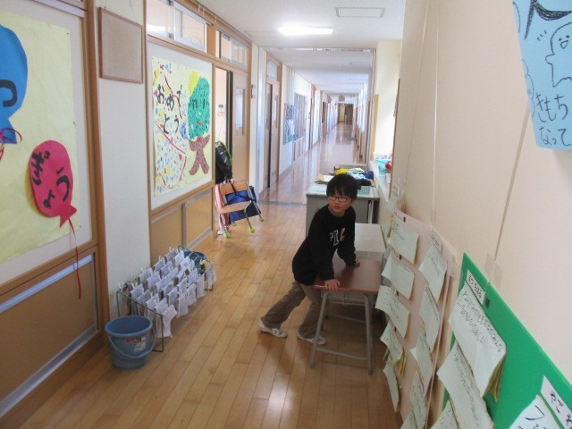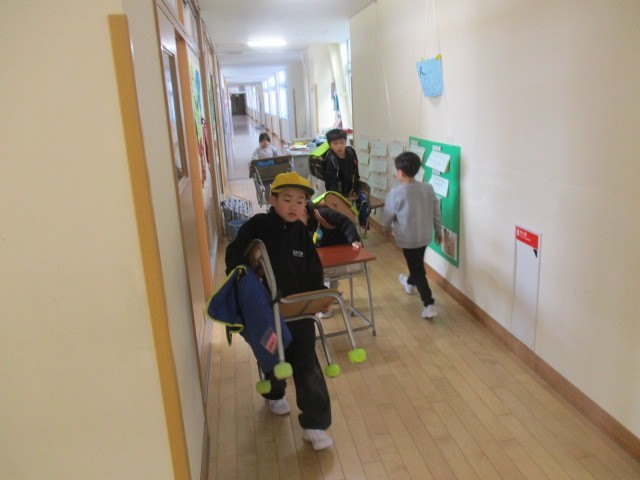 1年生は5時間目に掃除の準備をしていました。教室の机やいすを移動して掃除をする準備をしていました。放課後、先生方がワックスをかけてくれるそうです。