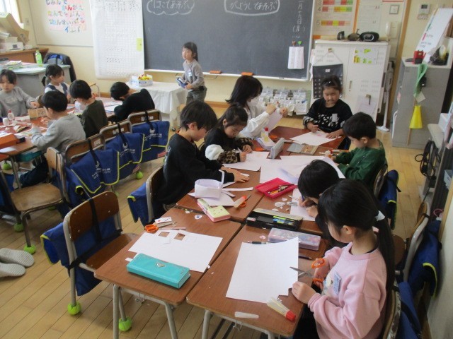 3月16日(月) 1年生 画用紙で…