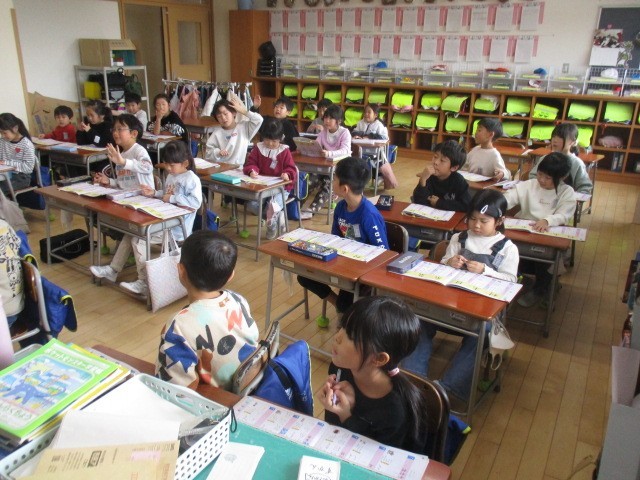 2年生の1時間目は、国語科の学習でした。視写や漢字のプリントを進めていました。