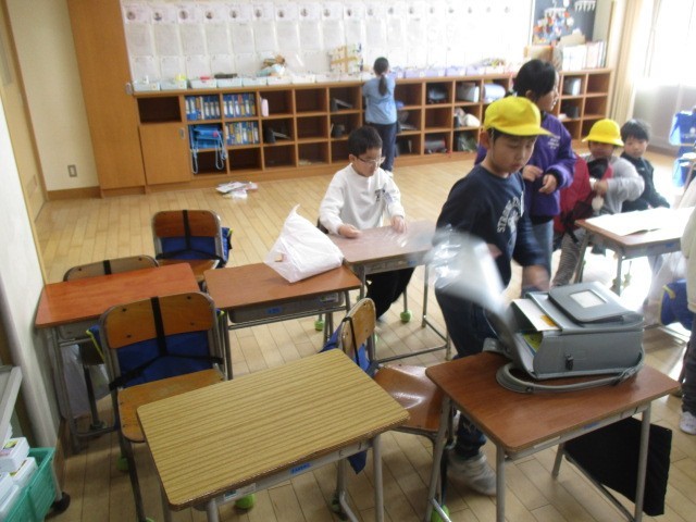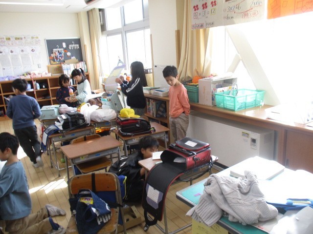 2年生は、3時間目に片付けをしていました。休み中に持って帰るものを整理していました。