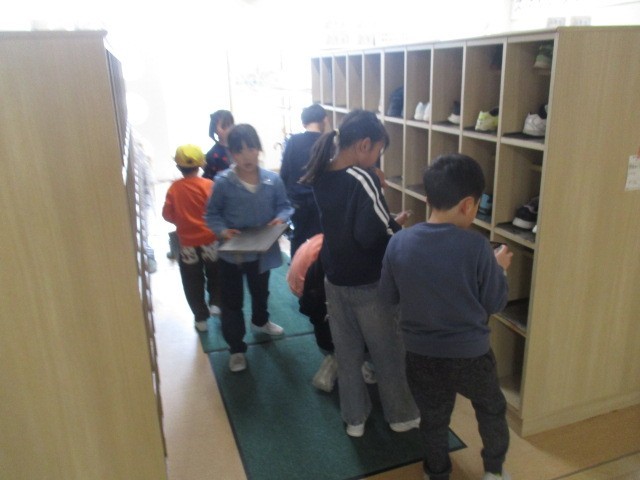 2年生は、下駄箱の掃除をしていました。