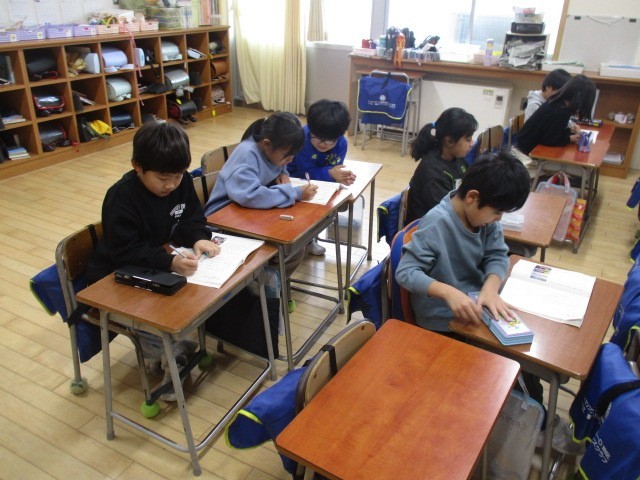 2年生は、4時間目に冬休みの準備をしていました。書き初めの練習用紙等、冬休みの準備をしていました。