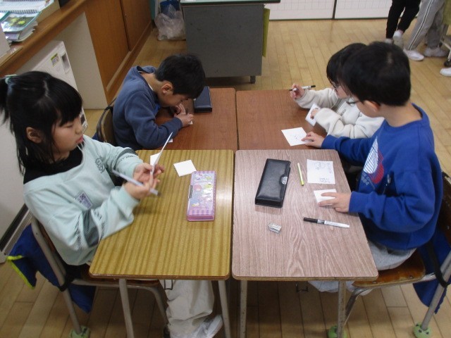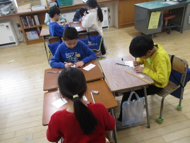2年生は、4時間目に冬休みの準備をしていました。書き初めの練習用紙等、冬休みの準備をしていました。