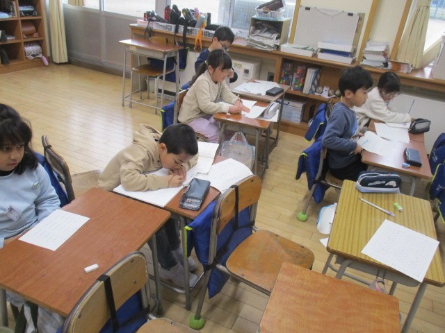 2年生の5時間目は、国語科の学習でした。漢字テストをしていました。