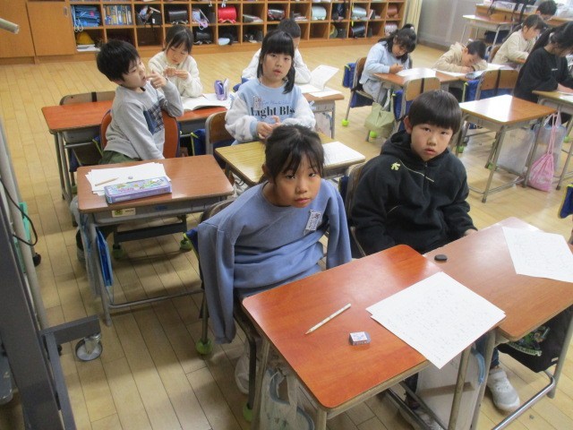 2年生の1時間目は、国語の学習でした。新出漢字を丁寧に書いていました。座る姿勢もばっちりです。