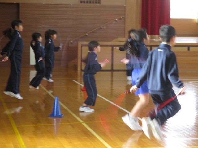 2年s寧の5時間目は、体育科の学習でした。なわとびをしていました。