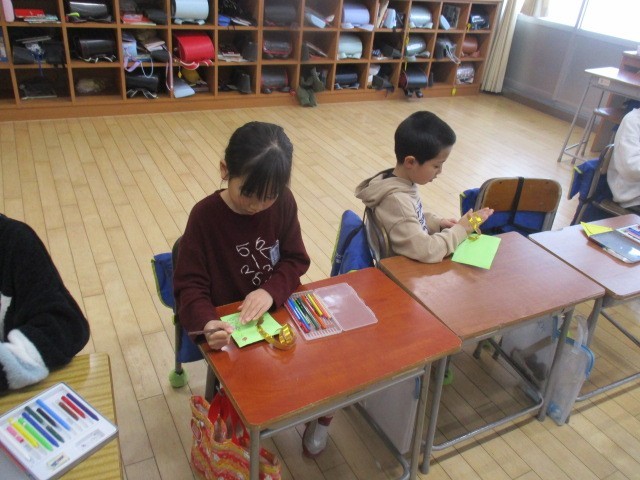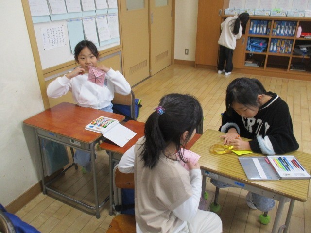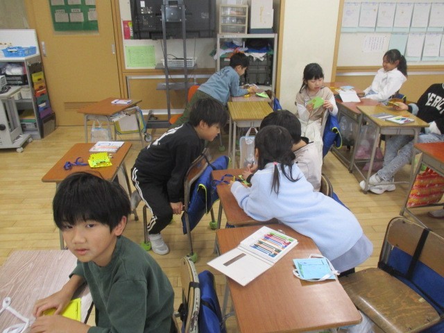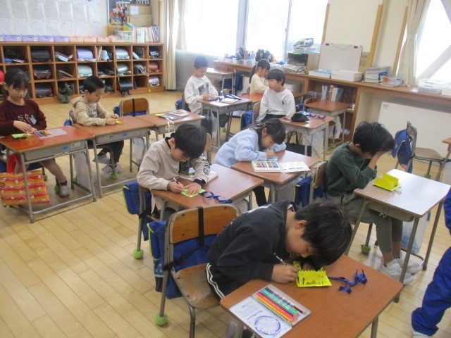 2年生は、3時間目に飾りをつくっていました。6年生さんの卒業をお祝いする飾りをつくっていました。