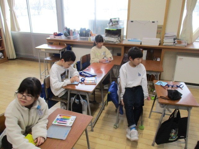2年生の5時間目は、国語科の学習でした。「みきのたからもの」のところのテストをするところでした。