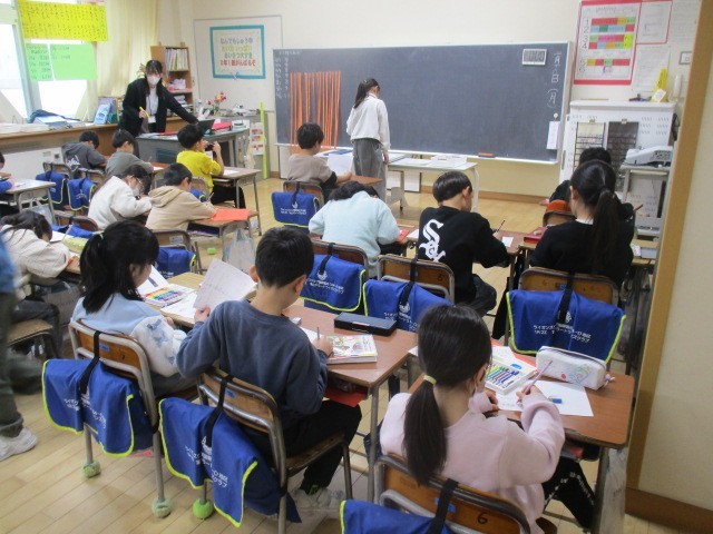 2年生は、5時間目に友達の話を聞いていました。高岡のイオンにいったときの話みたいです。