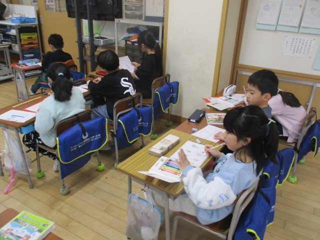 2年生は、3時間目に飾りをつくっていました。6年生さんの卒業をお祝いする飾りをつくっていました。